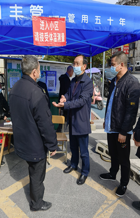 陈飞燕在东坪镇城西社区、城西家园小区检查疫情防控工作
