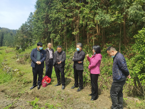 在广益社区益生中药材种植基地,调研组详细了解黄精种植规模、生长环境、功效、用途等方面情况。