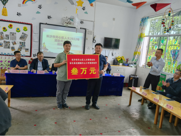 5月27日,长沙市天心区人大常委会党组副书记、副主任王海军一行带着对山区人民的关怀和山区教育事业的热忱,来安开展人大助学品牌“安化天心小学”援建活动。安化县人大常委会党组副书记、副主任龙要平等同志陪同慰问。 据悉,安化天心小学系长沙市天心区人大常委会对口援建学校,自2009年结对援建以来,天心区人大常委会动员社会各界力量,累计为安化天心小学募集资金近200余万元,新建了教学楼,扩建了学生运动场,添置了部分教学设施,解决了学校周边4000多名村民子女就学难的问题。