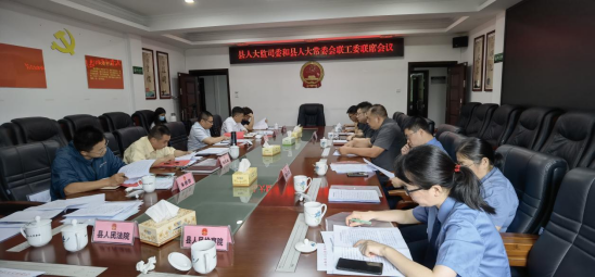 6月16日,县人大监察和司法委员会、县人大常委会选举任免联络工作委员会召开联席会议。会议由县人大监察和司法委员会主任委员刘百战主持,县人大常委会选举任免联络工作委员会主任刘斌出席会议。