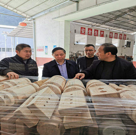 (龙要平一行在乐安镇星陵体育用品有限公司、宇搏体育用品有限公司,实地走访了解企业经营状况、发展诉求等情况。)