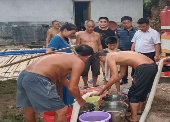 县十八届人大代表、田庄乡党委书记黄俊带领政府工作人员顶着炎炎烈日深入田间地头,通过走访、调查发现,田庄乡部分地区以山泉水、溪流水作为水源的分散供水工程水源枯竭,居民只能山路跋涉十余公里,挑水满足生活用水。为解决这一问题,黄俊立刻部署调度,成立临时送水队,通过消防车将自来水送入各家各户,解决群众用水不足的燃眉之急。到目前田庄乡应急办消防车往返1000多公里,为缺水地区送去300余吨生活饮用水,惠及9000余人,有效缓解缺水群众用水难题。