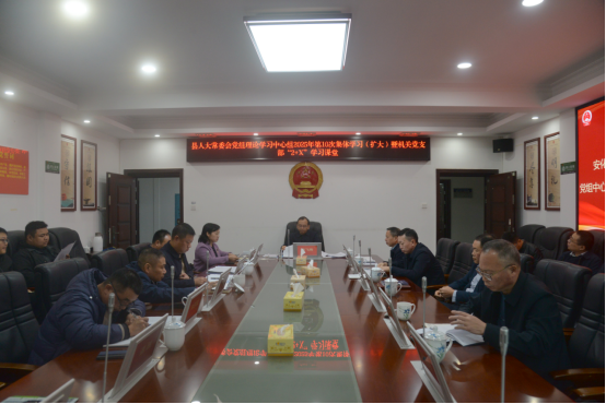 10月22日,安化县人大常委会党组书记、主任陈飞燕主持开展县人大常委会党组理论学习中心组2025年第10次集体学习(扩大)暨机关党支部“2+X”学习课堂。县人大常委会副主任龙要平、李艳云、李志生、卢映云、胡能新参加学习。