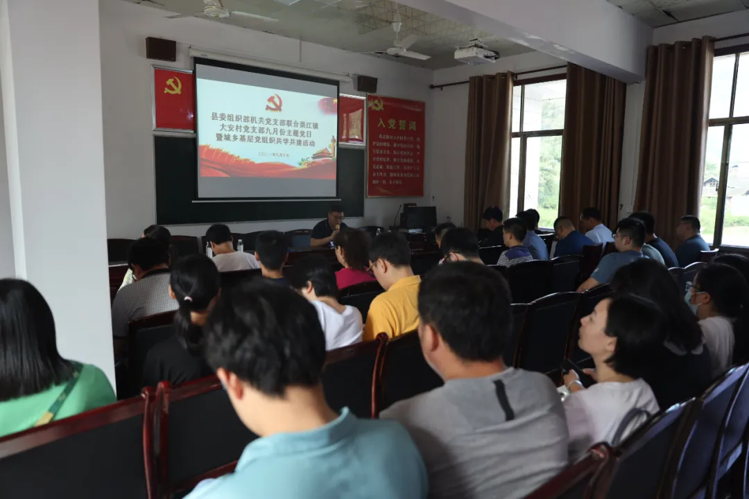 9月10日,县委组织部机关党支部联合渠江镇大安村党支部开展了9月主题党日暨城乡基层党组织共学共建活动,组织部机关全体党员、群众代表,渠江镇大安村村支“两委”成员、部分党员代表参加。