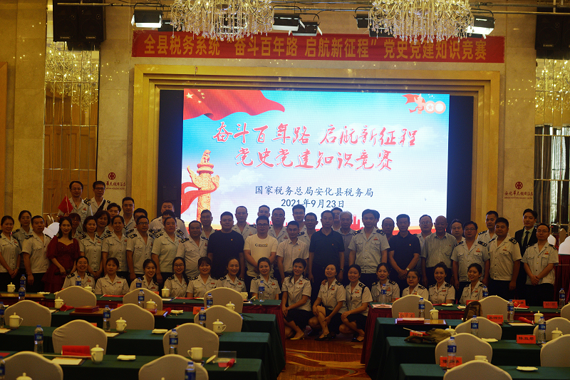 为庆祝中国共产党百年华诞,迎接中华人民共和国成立72周年,进一步推动全县税务系统党史学习教育走深走实,9月23日,安化县税务局举办“奋斗百年路 启航新征程”党史党建知识抢答赛,由各支部选派的27名选手组成9支队伍,进行了一场党史党建知识的精彩对决。县委党史学习教育巡回指导组组长李国祥、县委两新工委专职副书记宁毅、县委组织部组织科科长刘辉出席了活动。