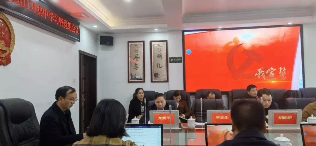理论中心组集中学习前,全体党员干部按要求开展了自学,认真准备了研讨发言材料。集中学习环节,首先观看了党史红色视频《党的力量来自组织》《百年誓言》,随后由县人大办公室副主任李雄辉组织学习了《中国共产党第十九届中央委员会第六次全体会议公报》,县人大民侨外委主任委员、机关支部书记夏琼玲领学了中央人大工作会议精神。研讨环节,县人大常委会党组成员、副主任龙要平作了题为《强化四个机关建设,全面提升履职能力》的中心发言,县人大常委会副主任李艳云、李志生、卢映云、胡能新,县人大财经委主任委员罗伟民、县人大教科文卫委副主任委员梁建农、县人大农业农村委副主任委员彭霞、县人大信息中心主任夏霄波等分别作了研讨发言。