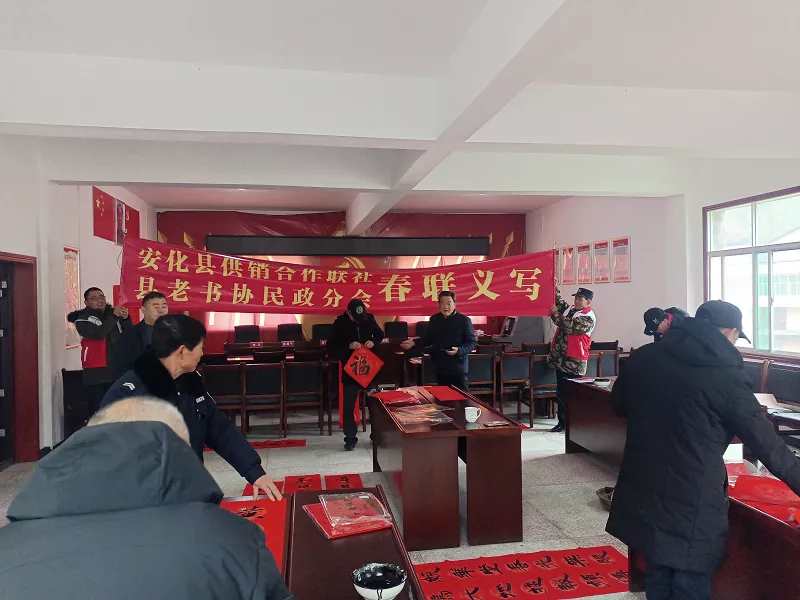 春节临近,为弘扬传统文化,促进乡村振兴,1月18日,县供销联社聘请安化县老年书协民政分会书法家到梅城镇兴茶村开展春联义写志愿者活动,把新春的祝福以春联的形式送给村民,让乡村年味更浓。