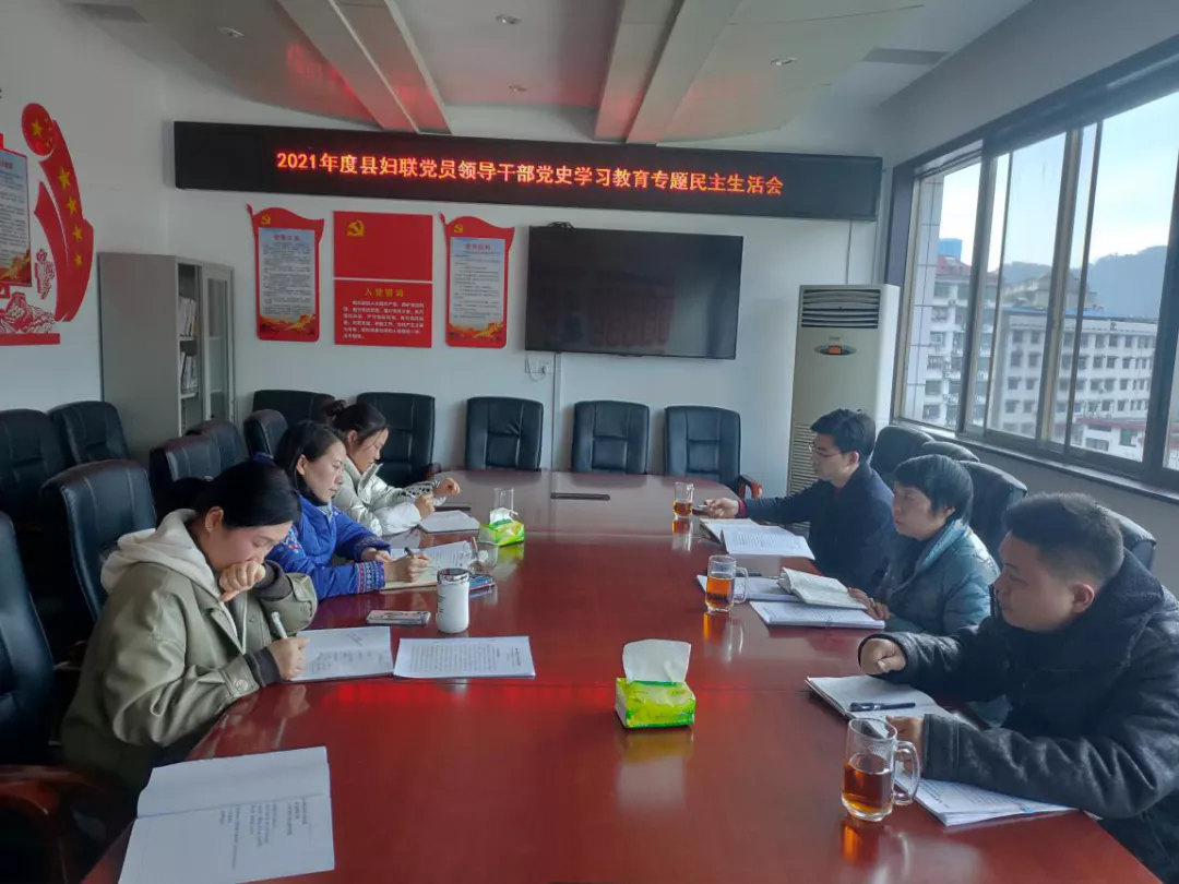 1月19日,县妇联召开2021年度党员领导干部党史学习教育专题民主生活会。县妇联全体班子成员参加,县委党史学习教育指导组、县纪委、县委组织部联点指导员列席指导。
