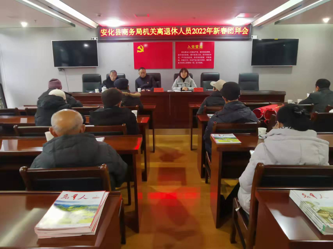 1月27日,县商务局召开机关离退休人员2022年新春团拜会,局领导班子与单位离退休老同志欢聚一堂,共迎新春佳节,共话商务发展。