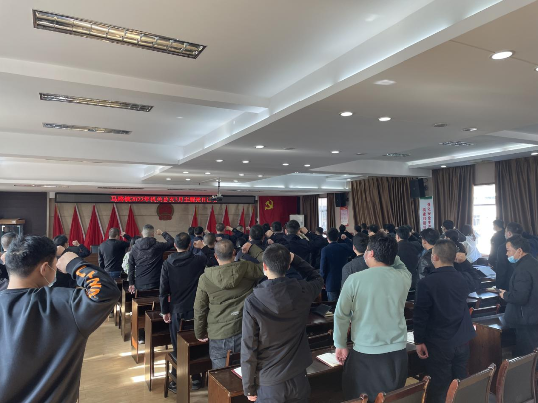 3月29日,马路镇召开机关3月份主题党日活动暨2021年度组织生活会,全体机关党员、入党积极分子和群众代表参会。