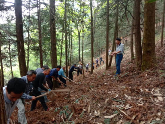 “我们一大早就上山,吃饭也是在山上,已连续10多天了。”党员曹德生高兴的说道。最近新联村党员充分发挥先锋模范作用,带领群众整理基地,栽种黄精。新联村山林面积13000亩,山地占比达92%以上;山为中低海拔(100-700米),有集中连片的阔叶林、针叶林、针阔叶混交林(以杉木林为主),符合黄精产地选择。根据这一特点,在2021年7月份驻村工作队和村支两委实地勘察、请教相关专业技术人员,对接相关中药材行业单位后,制定了新联村黄精种植规划。说干就干,在今年二月开春以来,新开片区七组、四组全民参与,先后开发出了“倒坪里”和“油榨通”两处黄精种植基地,面积在200亩左右,受益农户58户共246人。同时制定了黄精及林下经济发展细则以及对黄精种植的奖补方案,所有收益和盈亏将以户为单位共享共担的发展模式。2021年成立经济合作社以后,新联村就开始整合现有村集体资产,村民种、养产业,拉长产业链条,逐步形成村民负责种养,村集体负责加工、销售的发展模式,打造本村商标。同时畅通线上线下两条销售渠道,稳步推进黄精粗加工,齐心协力将黄精种植打造成村内支柱产业,形成共同致富的良性发展局面。