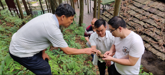 5月9日,渠江镇大安村天启合作社负责人夏北星在黄精产业交流群里求助说,合作社的黄精基地有部分黄精出现了根茎腐烂,叶片发黄枯萎的现象,请求帮助。县中医药健康产业中心的党员干部瞿强作为县中医药产业特派科技特派员,收到讯息后,迅速和夏北星取得了联系,电话里详细询问了目前黄精基地的病害情况,经过初步沟通,掌握了部分信息,但是考虑到合作社黄精基地的面积大,负责人第一次面对这种问题,比较焦急,县中医药健康产业中心立刻组织科技特派员中药材组去现场进行“会诊”。