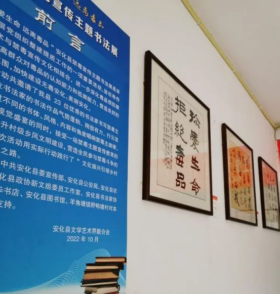 现在,来村部办事的群众,都会对这些书法作品进行一番驻足欣赏。作品为村民带来视觉盛宴的同时,也让大家自觉接受了禁毒主题宣传教育的洗礼,有效提升了村级乡风文明建设,营造了全民参与禁毒斗争的浓厚氛围。禁毒主题书法展也践行了“文化振兴引领乡村振兴”的安化之路,为加快建设无毒安化、美丽安化、绿色安化作出了应有的贡献。