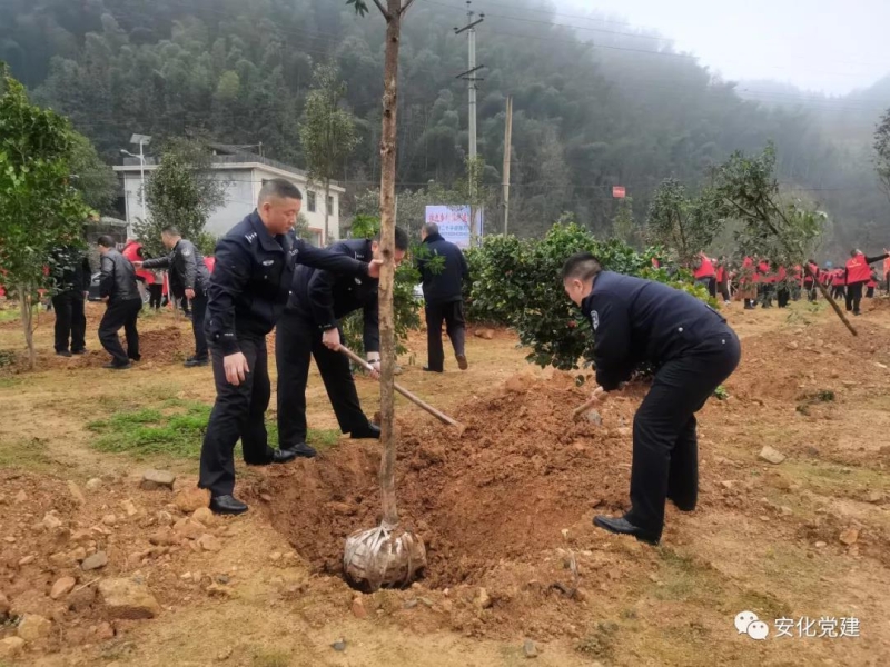 3月12日,县公安局交通警察大队机关支部结合3月份“主题党日”,组织全体党员干部前往田庄乡茅园村开展义务植树活动,为乡村振兴建设发展增添新绿。