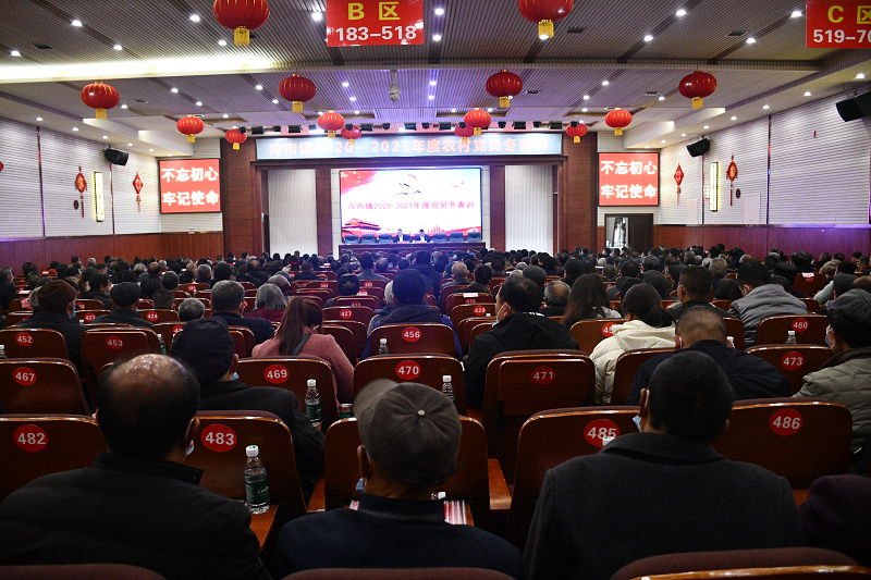 | 3月13日,冷市镇组织开展2020年-2021年度农村党员冬春训,全体党政班子成员、全体机关干职工、18个村(社区)“两委”成员及全体党员等共723人参会。