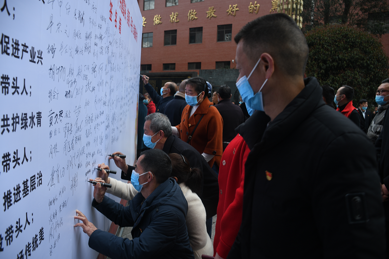 荡涤精神,稳舵前行。会前,参会人员在会场入口的签名墙上签下自己的名字,许下庄严一诺;会议伊始,全体党员在镇党委委员、组织委员曹凯仁的带领下,面朝党徽,高举右手,重温入党誓词。
