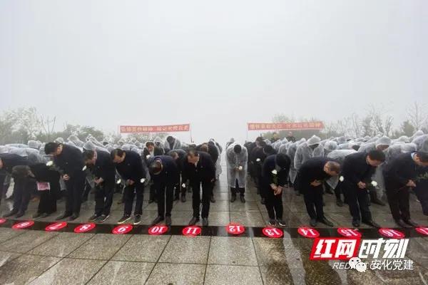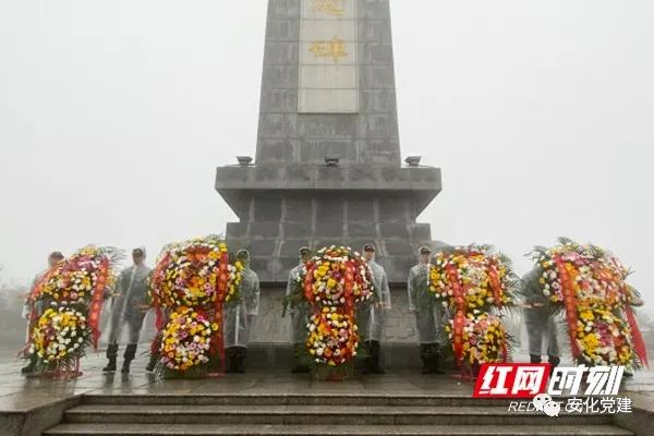 当天上午,安化县党政领导和200余名党员干部怀着无比崇敬的心情,来到安化烈士纪念碑前,静默肃立,宣读祭文。《献花曲》响起,礼兵抬起花篮,向烈士纪念碑敬献花篮。县委书记刘勇会讲话,介绍安化的红色历史和为国献身的安化英烈。所有参加人员向纪念碑三鞠躬,敬献鲜花并缓步绕行瞻仰纪念碑,向革命先烈致以崇高的敬意。