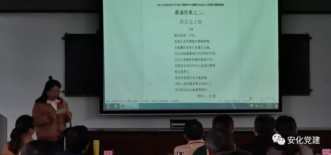 为传承优秀革命文化,继承革命先辈遗志,锤炼领导干部党性,2021年安化县学习习近平新时代中国特色社会主义思想专题进修班开展了“晨诵红色经典”活动,每天上课前15分钟,由小组推选的学员代表介绍、分享经典语段,再带领全体学员诵读。