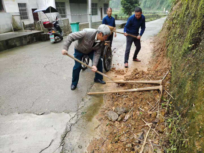 自“我为群众办实事”开展以来,老安村村支两委、党员、入党积极分子,竭心竭诚做人民群众的服务员,为群众的出行保驾护航。 连续多日的阴雨天气导致村级主干道部分路段塌方,4月26日,老安村村支两委组织开展义务清障行动。清理现场,有着20年党龄的刘修七同志带领入党积极分子发扬“不怕脏、不怕累”的精神,撸起袖子加油干。 陶国辉通过群众在网格群里发的照片,迅速赶来支援。骑车经过的老党员杨许生老支书,看到大家在清理路边塌方,也停下车加入到清障队伍中来,大家分工合作,劲往一处使,汗往一处流,你一锹我一铲,充分发扬着团结、互助、友爱的精神。 路过的群众在党员志愿者的示范引领下,也自发加入清障队伍中,在大家的共同努力下,村级主干道恢复畅通。 |