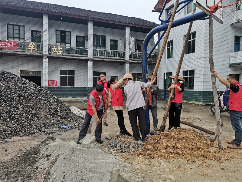 按照上级主题党日活动提示,完成规定动作之后,建新村党支部以党建引领,结合“我为群众办实事”实践活动,将主题党日活动开到了室外。顶着涓涓细雨,经过一个上午的会战,在建新村党支部全体党员和联村领导干部的努力下,一个崭新的篮球架成功屹立在村部文化广场,将成为村民又一休闲锻炼之地。