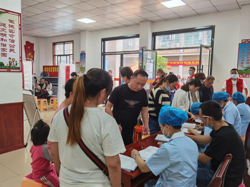 5月26日清早,安化县城南社区党群服务中心一楼大厅里居民群众络绎不绝,忙碌的志愿者身影随处可见,现场井然有序。为方便居民群众就近接种,切实解决群众关心关切问题,县城南区管委积极与县疫情防控指挥部、县卫健局对接,在城南社区新设一个新冠疫苗临时接种点,践行“我为群众办实事”。