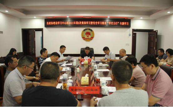 6月29日,县政协召开党组理论学习中心组2021年第6次集体学习暨党史学习教育“学史力行”专题学习研讨会,会议由县政协党组书记、主席王益文主持,县委党史教育第五指导组到会指导。