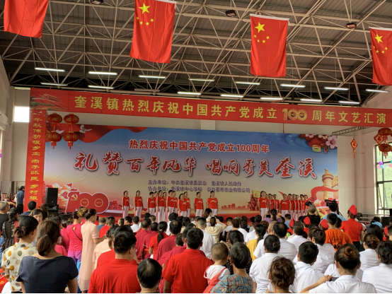 百年风雨兼程,百年风华正茂。2021年是“十四五”开局之年,也是我党实现“两个一百年”奋斗目标的关键时期,“十四五”规划蓝图已经绘出,新的征程已经开启。6月29日下午,奎溪镇以“礼赞百年风华,唱响秀美奎溪”为主题,以“文化强国”、“文化振兴”为引领,开展主题鲜明、内涵丰富、有特色、有亮点、形式多样的庆祝建党100周年文艺汇演活动,营造团结奋进、开创新局的浓厚社会氛围。 本次文艺汇演分为七一表彰和文艺汇演两个环节,活动中穿插“百舸争流 千帆竞发”百年千题党史知识有奖问答环节。整个活动在《中国范》朗诵+唱歌+舞蹈中拉开帷幕。活动现场人头攒动,热闹非凡,演出节目形式丰富、内容新颖,包括奎溪正在申报市级非物质文化遗产阳戏、歌曲、舞蹈、小品等节目18个。 一首首熟悉的音律,激扬的音调,让整场活动都沉浸在一种浓浓的爱国热情中,演员们用嘹亮的歌声和优美的舞姿来赞颂党的恩情,用真挚的情感表达对党的祝福。情景剧《童心向党 共诵辉煌》内容鲜活、形式多样,充分诠释少年儿童是党的事业的传承者和接班人这一文化内涵,昭示少年儿童“童心向党”从小听党的话、跟着党走的文化理念。舞蹈《十送红军》深深表达对红军无比热爱与眷恋。合唱《大中国》、手语舞《我和我的祖国》舞蹈《康巴情》等节目,讴歌了中华儿女对党的感恩、对幸福生活的歌唱和对伟大新时代的礼赞。最后,活动在全体人员起立共同歌唱《没有共产党就没有新中国》中落下帷幕。 通过本次文艺汇演,展示出奎溪人民在党的光辉照耀下幸福生活的喜人景象,营造了“建党百年”“举国同庆”的喜庆氛围,彰显了奎溪创新发展的昂扬姿态和无限活力,进一步激发广大党员干部群众一心向党,永远跟党走的使命初心和工作热情,为开创奎溪跨越式高质量发展新局面提供了精神动力。
