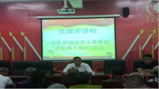 7月1日下午,安化县退役军人事务局党组书记、局长张斌华来到乡村振兴联系村滔溪镇文溪村开展“送党课下基层”活动,文溪村在家党员、局机关部分党员参加了党课学习。 张斌华局长围绕“正确理解乡村振兴战略、乡村振兴战略应怎样实施和农村党员在乡村振兴中应该怎样发挥作用”三个方面,用通俗的语言、生动的事例,给参会人员上了一堂《深化党史学习,全面推进乡村振兴》的专题党课。他指出,办好农村的事情,实现乡村振兴,关键在党,根本是发挥党组织战斗堡垒和党员先锋模范作用。他号召,基层党员要树立高度的责任感和使命感,积极主动作为,真正以主人翁的意识、以领头雁的姿态,以“功成不必在我,功成必定有我”的担当全面投入乡村振兴战略,把文溪村建设得更美好、更富裕。