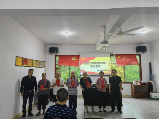 30日下午,福欣村党支部召开了7月份主题党日既“光荣在党50年”纪念章颁发仪式,大福镇副镇长、联村领导陶鲁哉出席并向5位老党员代表颁发了“光荣在党50年”纪念章。