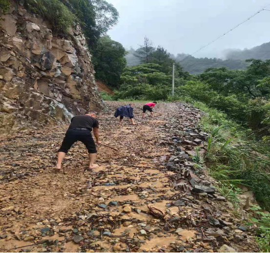 (网溪村党员义务清整泥流损毁路面,方面车辆人员通行) 据不完全统计,此次全镇共有200余名党员参与防汛抗洪,正因为他们冲在第一线,才守护住了全镇4万余名人民群众的生命财产安全。 |