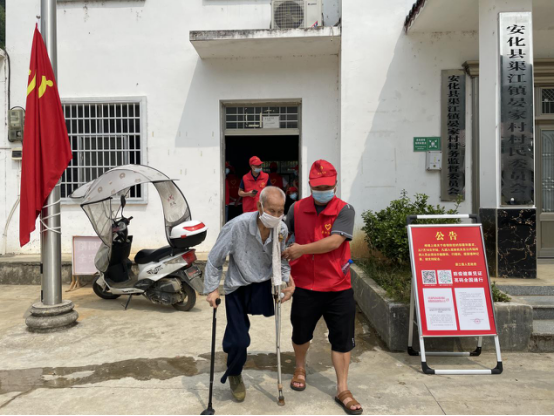 “嗲嗲,这半小时没什么不舒服吧。来,我扶您一下,小心点哦。”在渠江镇晏家村门口,党员志愿者扶着前来接种的老人家这样说道。 为做好新冠肺炎疫情防控工作,渠江镇党委再次进行部署,全体党员干部利用周末时间分组下沉到村(社区)开展疫苗接种等工作,并介绍目前国内疫情形势,宣传疫情防护知识,提醒做好防护措施。党员志愿者们冒着高温酷暑,主动入村走访,分组分片进行排查,逐户核实疫苗接种情况。同时,对未接种人员具体情况进行逐一了解,并耐心解答疫苗接种流程、疫苗安全性等相关问题,鼓励群众积极主动参与疫苗接种。此外,通过对符合接种条件的人员开展接送、接种服务、对存在禁忌症人员进行进一步核实、对在外务工的人员进行电话确认等方式,确保对疫苗接种情况底数清、情况明。 渠江镇通过采用“村村响”广播、流动宣传车、张贴海报、进村入户走访等方式积极宣传防疫知识,提醒群众勤洗手、勤通风、戴口罩。各支部在家党员迎难而上、冲锋在前,冒着高温酷暑,坚守奋战,以实际行动践行“我为群众办实事”,让党旗在抗疫一线高高飘扬。