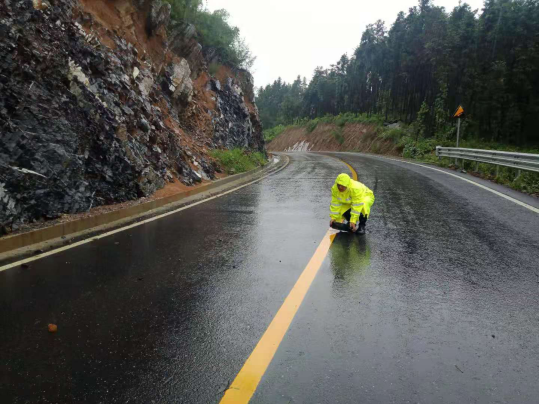 雨天路滑碰到落石极易引发交通事故。执勤人员加强路面巡逻排查,及时清理路面落石,并提醒过往车辆减速慢行。