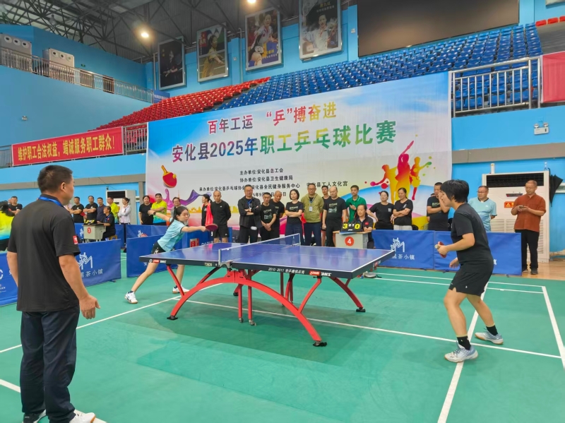 今年,是中华人民共和国成立76周年,中华全国总工会成立100周年,本届比赛以“百年工运 ‘乒’搏奋进”为主题,旨在传承红色工运精神,弘扬劳模精神、劳动精神、工匠精神,持续激发广大职工团结拼搏、奋发向上的精神风貌,凝聚推动安化县域经济社会高质量发展的强大合力。 |