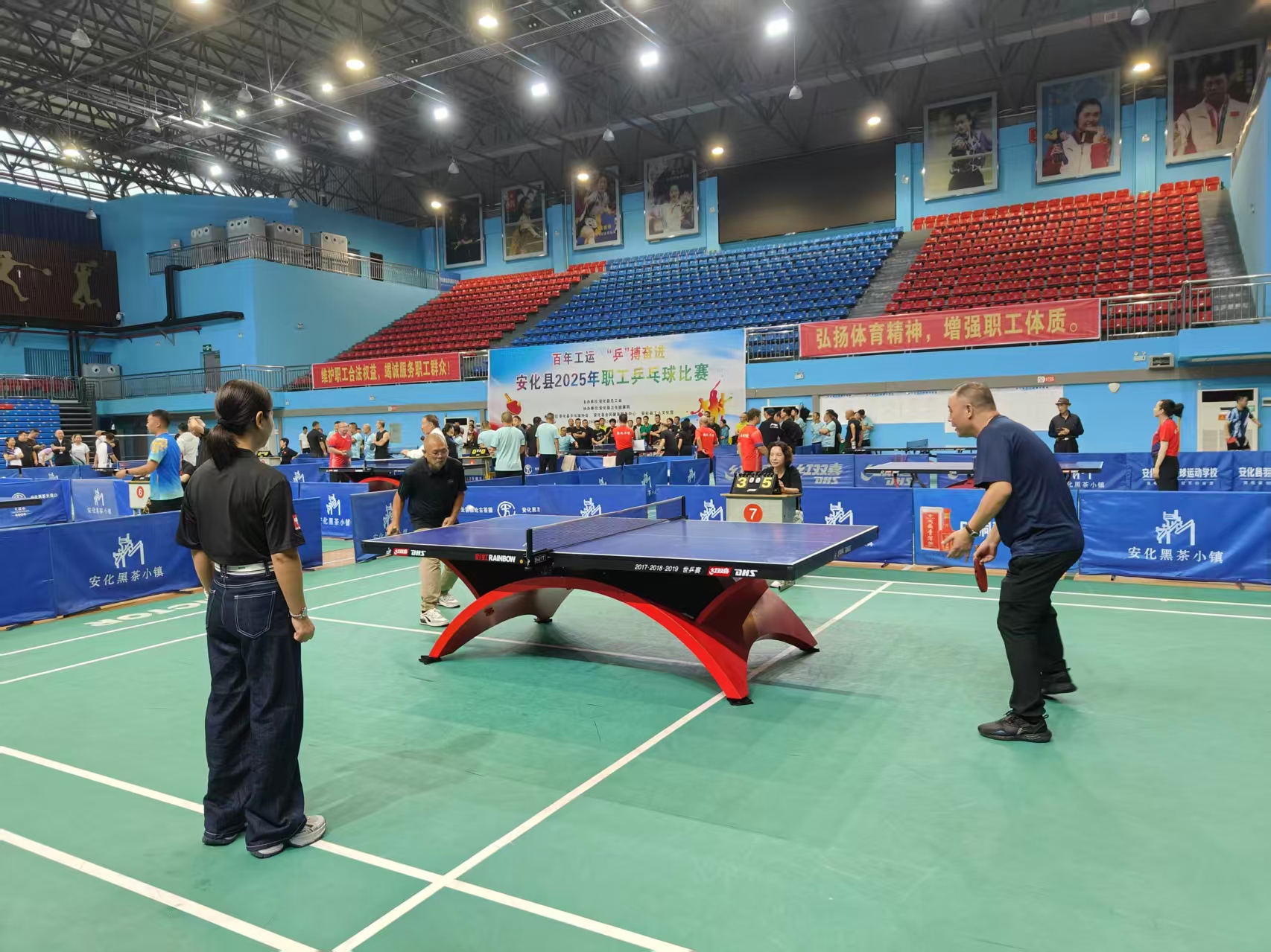 9月24日,由县总工会主办,县卫生健康局协办,县乒乓球协会、县全民健身服务中心、县工人文化宫承办的“百年工运 ‘乒’搏奋进”安化县2025年职工乒乓球比赛在县体育馆拉开序幕。 此次比赛为期3天,设有团体赛和男单、女单、男双、女双、混双5个单项比赛项目,将通过小组赛和淘汰赛决出前八名团体奖和若干名单项奖,同时评选表彰优秀组织奖和道德风尚奖若干名。全县各级工会积极组织,广大会员热情参与,共17支代表队,350余名运动员报名参赛。